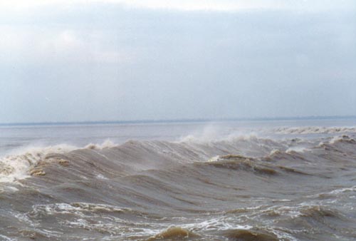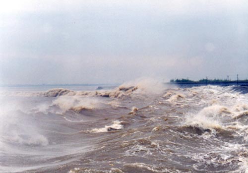 Hai Ning is just a small city next to Hang Zhou, which is the capital of Zhe Jiang Province. It lies by the seaside, at the cross of Qian Tang Jiang River and the sea. Every this time of the year, the tide of Qian Tang Jiang River reaches its climax, great tide runs upstream from the end of this River. In fact this travel couldn't be regarded as an interesting one. No more beautiful scenary, on the other hand the weather is always rainy and cloudy. Anyway this travel is organized by my company, anything is free.:-)