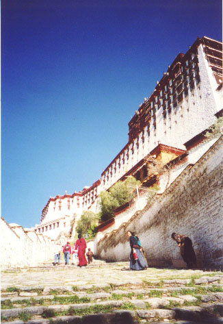 "Lhasa" in Tibetan means "the land of gods". There are numerous scenic spots and historical attractions, among which Potala Palace, Norbulingka, Drepung Monastery, Sera Monastery, Jokhang Temple and Ramoche Temple, are the most famous.when we talk about Lhasa, we are sure to think of Potala Palace. The Potala, one of the most famous architectural works of our nation, is erected on top of the Red Hill in Lhasa. The word "Potala" comes from Sanskrit. In the 7th century, after the Tibetan King Songtsen Gampo's marriage with Princess Wencheng of Tang Court, the Palace was built for the meditation. In the mid 17th century, it was rebuilt by the 5th Dalai Lama to its present size, and ever since it became the Winter Palace of the Dalai Lamas. The construction took 50 years from its beginning to completion. The Potala is divided into two sections, namely, the Red Palace and White Palace. The total height of Potala is 117 meters which is built in 13 storeys, the length of the Palace from east to west has 400 meters and the breadth from south to north has 350 meters. The whole building is a structure of stone and timber. The topmost flat glistens with golden roofs. It is a magestic architectural work and the cream of Tibetan culture and a complex of Tibetan and Han culture.