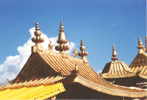 Situated in the center of the old section of Lhasa, Jokhang Temple was built in the mid 7th century A.D. and later extended by successive rulers, it has now become a gigantic architectural complex. Located in the east, facing to the west, it is a 4 storeyed temple with splendid golden roofs. It has a architectural feature of Tang Dynasty and also assimilated very much features from both Nepalese and Indian Buddhist temples. The murals in the temple mainly depict the life stories of historic characters. The temple houses many historical relics since Tang Dynasty and statues of King Songtsen Gampo, Princess Wencheng. Princess Bhrikuti Devi. "Princess Yellow" (a tree), and "The Uncle - Nephew Alliance Tablet" can be seen at the from gate of temple.