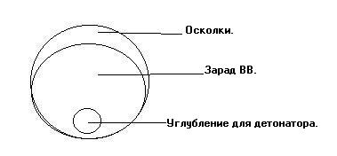 начинаться как можно дальше от осколков, чтоб взрывная волна была сильней. В качестве заряда может быть первичное ВВ или вторичное ВВ, предпочтение лучше отдать вторичному, так как оно более безопасное. Если вы используете первичное ВВ, то его лучше пластифицировать или спрессовать, а сверху на заряд надо надеть толстостенную крышку, в крышке надо сделать дырку для детонатора, в том месте, где это показано на рисунке, при вставлении в МОН взрывателя надо его там закрепить. Поскольку МОН обычно используются на растяжках, то в качестве детонатора лучше использовать взрыватель типа МУВ.