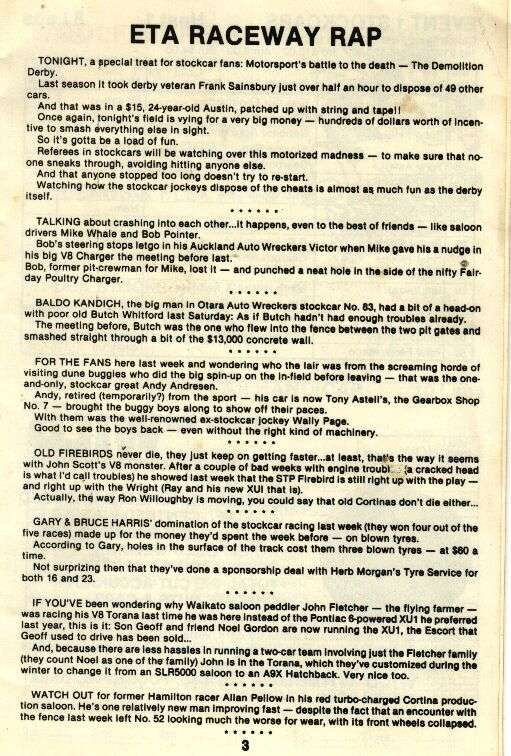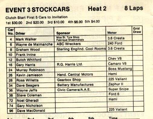 and Ltd Saloon combo of 58 cars that graced Waikaraka's printed program