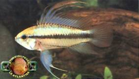 macho posee una librea más policrómica y las aletas dorsal, caudal y anal terminadas en