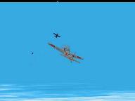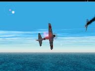 F4U begins to turn,bleeding E KUER shoots from the left, F4U
