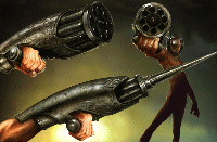 Al conectar la Ametralladora al Casco que llevas puesto, creas la arma m�s fant�stica que se haya creado antes. Se convierte en un Francotirador de alcance de hasta 5 km. Con la cual le puedes disparar directamente, a la cabeza de esos extraterrestres.