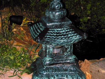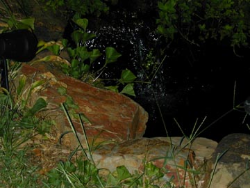 | Small waterfall from upper pond.All together ponds are around 3800 gal with a 165 gal bio filter made out of three 55 gal barrels. Total fish around 85 with 2koi 16-18 inches about 50 gold fish, 1 cat fish, a few minnows that survived the 25 or so breem caught by my 5 year old grandson Jake and a few new baby fish,speices unknown??? | |||||||||||||||||||