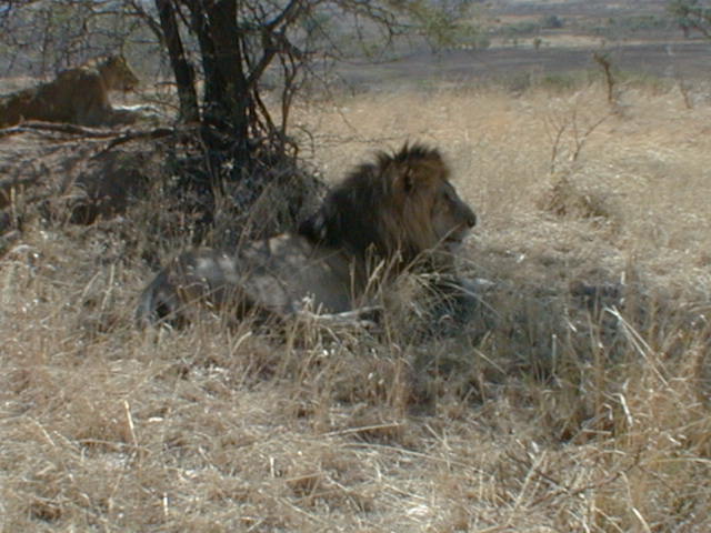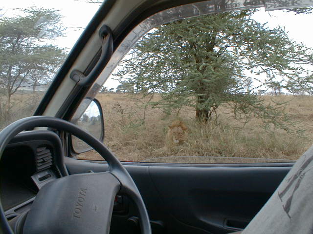 The car started to chase the lion and it appeared that there were three more just next to the campsite. We were in real danger and the French ladies started to panic.
