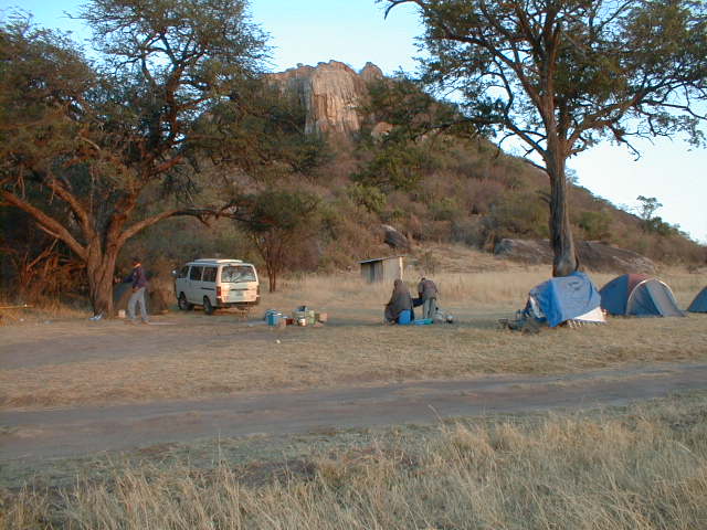 The night was dark at the Lobo campsite in the Serengeti Park in Tanzania. Although there were many stars visible in the sky, their light was not enough to see more than 20 meters in the darkness. It was impossible to see anything of the large valley, which extended into a low range of mountains. Also the few buffalo's and zebra's who could be seen grazing during the day and who had to be there were not recognisable in the darkness. Probably on their site they were able to see the two groups - the Dutch and one French - camping just under the rocks which were partly covered by the few trees and the not so dense bushes.