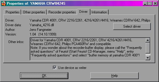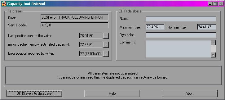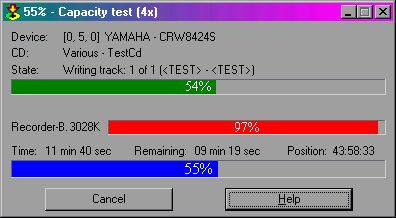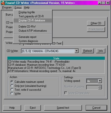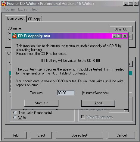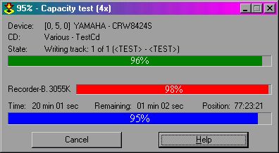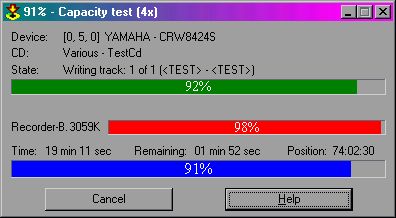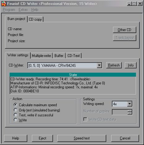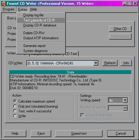 " Feurio! Writer " a test kapacity CD-R na CRW8424S