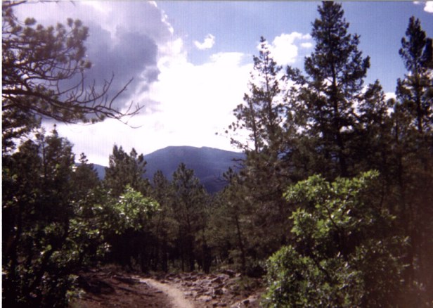 This picture was taken on the trail, while I was hiking, and that mountain you see between the trees is Baldy Mountain......isn't that beautiful?