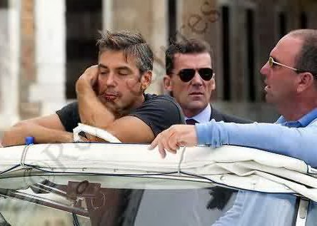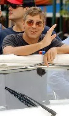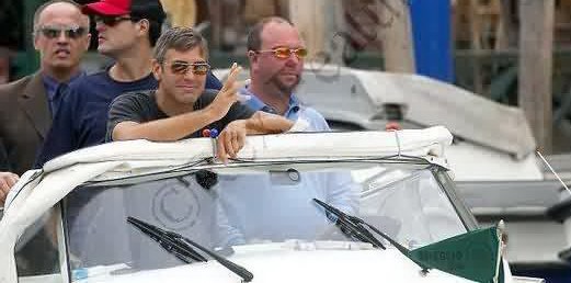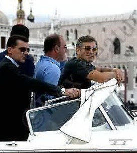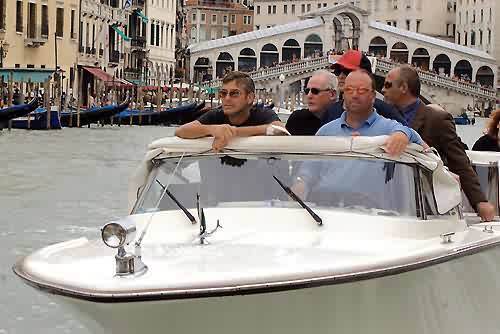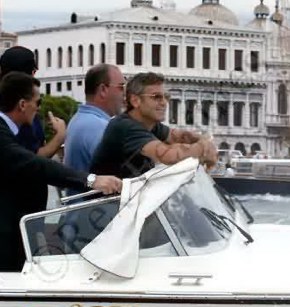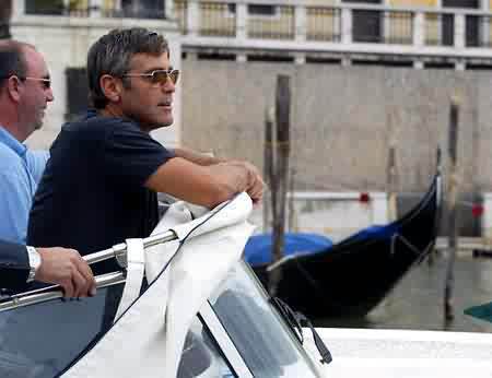 U.S. actor George Clooney (news) arrives on a boat in Venice, Italy, Monday, Sept.1, 2003. Clooney is in Venice to present his movie 'Intolerable Cruelty' out of competition at the at the 60th Venice Film Festival