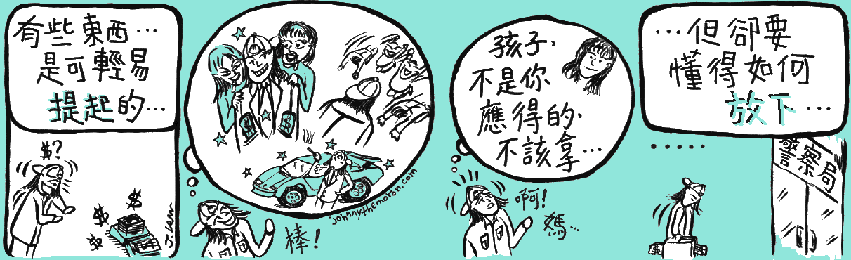 強尼遇到了一群有自戀狂的鹿、體驗了生命的故事、曾經拿起一些東西而最後學會了放下、也表達了他想去西藏作如尚的意願… 而母親的反應是…