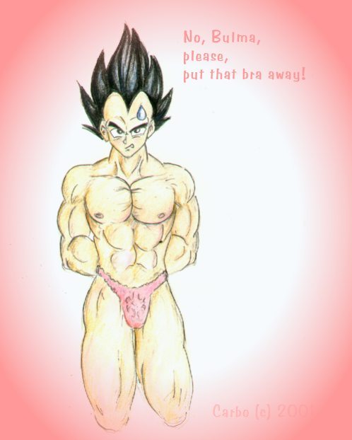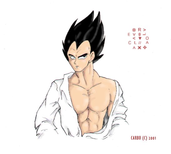 My stuff Gorgues Bulma She came out real pretty. It's Bulma in a pretty revealing outfit, looking all cute an innocent. For some reason I just love her 'big' hairdo (although in this her hair isn't curly) Photo-paint colored. *new* Yummy Vegeta in a half open dress shirt. A very stylish, sexy and cool sort of pic. Photo-paint colored. *New* Vegeta in pink! Don't give Bulma chains and lace panties.This will be the result. Man this is so funny, and sexy too=) Bunny Dip A humorous pic of Chi Chi in a bunny outfit. Got the idea from a bunny documentary I saw a while ago. (A Bunny Dip is a the way the "bunnys" arched themselves backwards gracefully while serving to customers.) Hand drawn Bunnies Chi Chi and Bulma dressed up in Bunny suits.Hand drawn. Cool Bulma Bulma in a pair of leather pants and a cool shirt. One of my best Bulmas! Hand drawn/colored Father & Son Vegeta has been left alone with baby Trunks, and is not happy=) Simple, but cute and funny. Hand drawn Dancing Chi Chi and Goku practicing for their wedding. Hilarious! (drawn from an actual scene.) Dancing in color The pic above, only colored and so much better! Go see! Dancing again, this time Goku's dipping Chi Chi (intentionally). Looks like thier dancing Ballet. Hand drawn. |