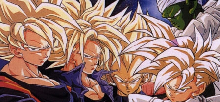 Dragonball Z picks up where Dragonball left off, making Goku a grown man with a wife and child. In this series there's less humor and more fighting, world-saving and that kind off stuff. But some great characters are introduced, including Vegeta and Trunks. This is the most popular and well known series of the three and was made in 1995. The series alos intrudeces the Super Saya-jin (SSJ) form, which Sayans or half-Sayans(the warrior race from Planet Vegeta, Goku, Vegeta...) can trasnform into, and come a considerable amount stronger. In this form the persons hair changes to bright blonde, and eyes to pale green. Dragonballs are still part of the story, but they are mainly used to bring people back form the dead ect.