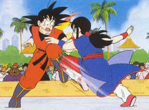 Anyway, back to the story: After living in the wildreness for many years, Goku (who is now around 12) encounters Bulma, a 16 city-girl who is looking for the Dragonballs to wish herself a perfect boyfriend. Goku joins Bulma in the hunt, hoping he might get to wish his grandfather Gohan back from the dead. And so the adventure begins.