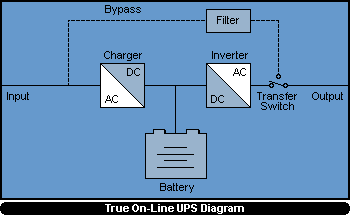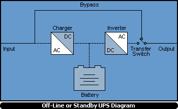Off-Line or Standby UPS consist of a basic battery,