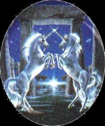 Unicorns were also popular emblems in medieval heraldry. During the Middle Ages, and even later, the unicorn's horn (as it was alleged to be), because of its fabled purity, was a popular ingredient for medicines and for alchemical reactions. Potentates and pontiffs obtained reputed unicorn's horn because it was considered strong protection against poison. The horn was also believed to ward off stomach trouble and epilepsy. The Unicorn is found throughout world legends. His appearance has changed over time as writers and artists have taken poetic license and used their imaginations. The Myth of the Unicorn can be traced back to early pagan mythology. Oddly enough, this pagan creature was accepted in Medieval Europe, which was strictly dominated by Christianity, and the Unicorn even became accepted as a symbol of Christ Himself. The Lady of the Unicorn was a predominant part of the European Myth. It was said that only the purest of maidens could tame this beast. When a Unicorn saw a maid sitting in the wood, he would came forward and docilely lay his head in her lap, as innocent as a child. This was the Unicorn's one weakness. Some tales tell of a Lady residing in a cave with the Unicorn. These tales portray the Virgin which loved the Unicorn. The Modern Unicorn is result of many different people??s imaginations. He has changed from the delicate, goat-like creature to one of simple equine beauty. A beast ridden by a Virgin who he can actually trust not to lead him to the Hunter. He comes in every color and size, from the purest ivory to the darkest ebony and every shade of the rainbow in between the two. He can have the wings of Pegasus and take the name of Alicorn, or he can be given the leathery wings of a Demon and be a creature yet unnamed. Today??s Unicorn is special to each of his followers, but he still holds the basic principles of nobility, selflessness, and purity. And he shall always be one of the most beautiful creatures conceived by the mind of Man. Stories of a magnificent horned steed filtered into European throughout the Middle Ages. They are believed to have originated from three sources. First, written accounts from Greek and Roman sources contributed to the widespread belief in the unicorn. Second, popular acceptance of the unicorn's existence. Finally, explorers brought back tales of the beast from other lands. It was in Medieval Europe that the unicorn attained its greatest fame, and where it began to assume the physical attributes we associate with it today. The European unicorn took the form of a large, white steed with a flowing white mane and a tuft of white hair on its chin. In most other respects it was much like an ordinary horse, except for having white hooves. It most unusual feature, of course, was the single white spiral horn projecting forward at an upward angle from its forehead. |