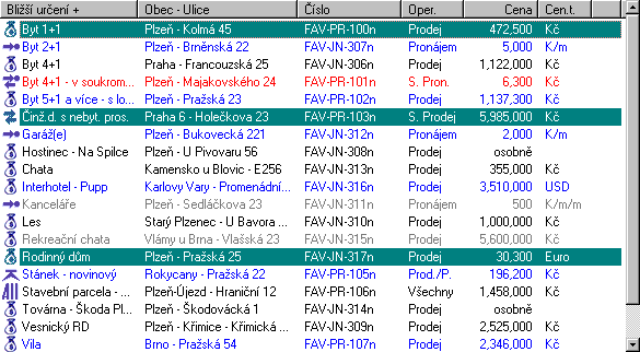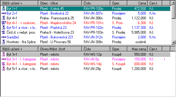 List view The List view shows groups of fields stored in the database. The showed group needs to be selected in the Function tree. Every time the user changes the selection in the list, the Info view changes its content to show information about last time selected field. The list may be sorted by any displayed criteria. Multiselecting can be used for most of field operations, such as deleting, printing, etc. The List view divides itself in the case, when the user wants to combine offers with request or vice versa. By moving inside the upper list (with offers), the lower list changes its content, showing the requests that matches the selected offer and the specified combination criteria.