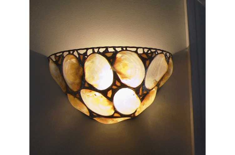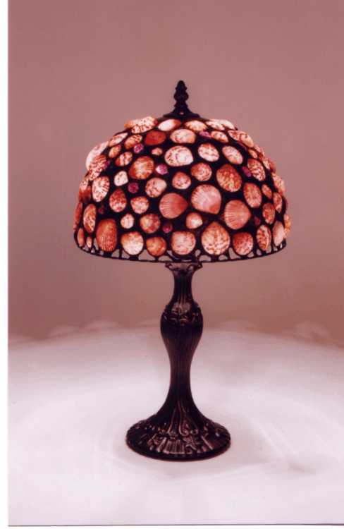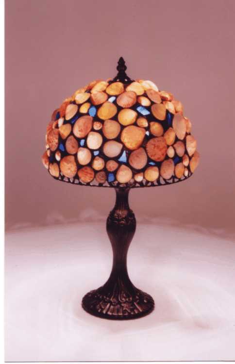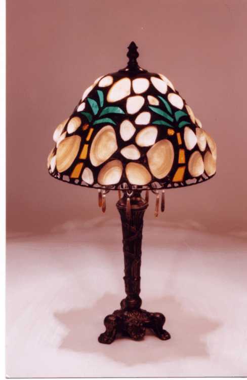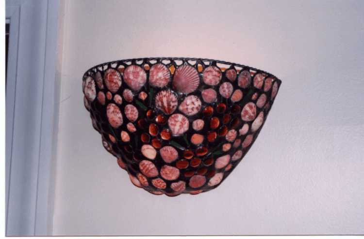 clam shells with stain glass palm trees finished with black patina.