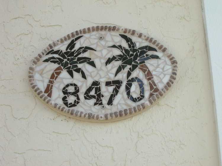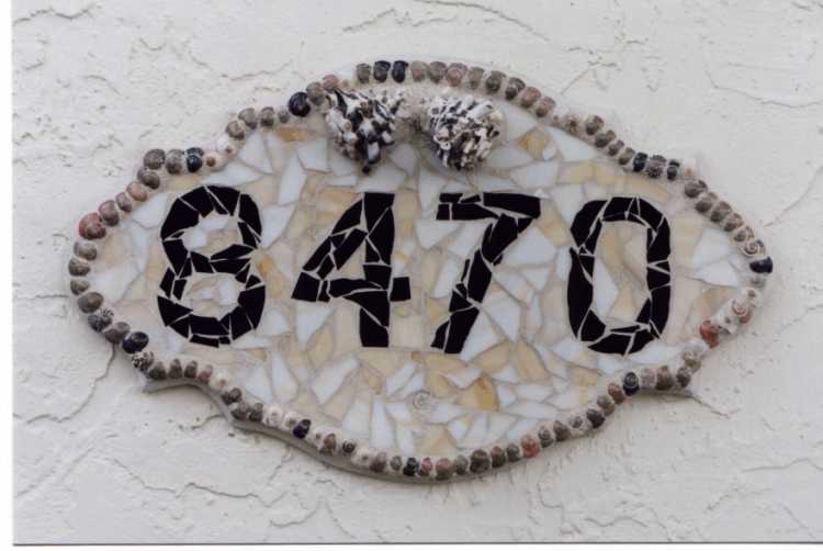 A stained glass mosaic with a pineapple trimmed in seashells.