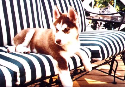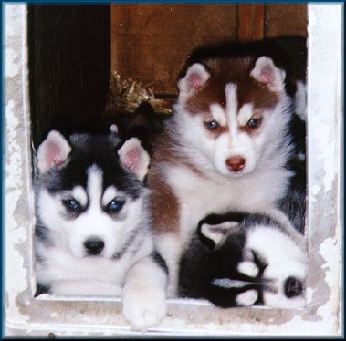 Rechts aussen das verpennte Etwas ist Dakota von Red Wolfs Little Sister Zwinger. So verpennt wie sie da ist, ist sie auch heute noch. Die Lady ist mittlerweile 5 Jahre und immernoch so knuffig wie hier zu sehen. Sie gilt nicht gerade als typischer Husky, da die Süße sich nach 5 Km mit dem Fahrrad bereits hinter herziehen läßt. Lustig wirds wenn es regnet, sie ist so ziemlich das wasserscheueste Wesen, das ich kenne. *g* Die rote Hündin hier, ist Daylight Taiga ihre älteste Schwester und das Linke Wollknäul die jüngste im Bunde, Despina Regenta.