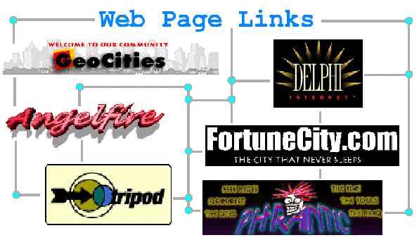 These are links which will take you to a number of free homepage providers on the 'Web. There are many other services which provde free homepages, excluding those which your Internet Service Provider (ISP) gives you when you sign up. However, these are the ones I could find which are not restricted to certain types of webpages, commercial or computer-related ones for example.