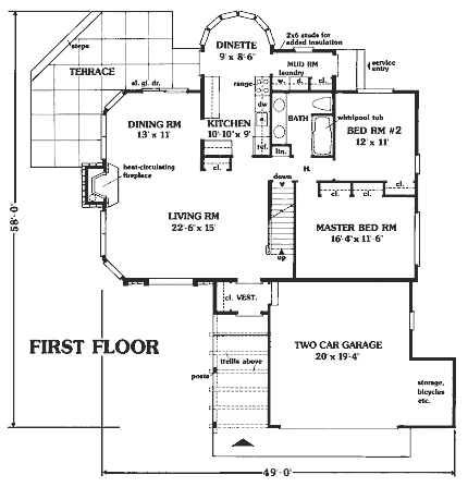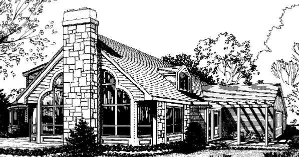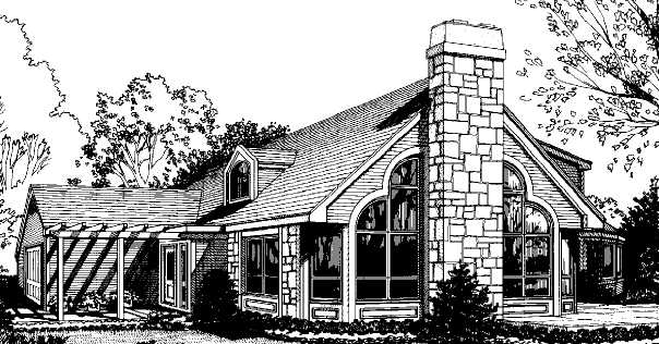 The outdoor trellis leads to the front entrance into an energy-saving vestibule. The dramatic combined living room and dining have a 16-foot