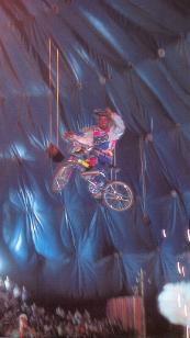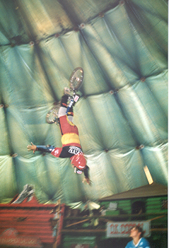 EC Marsta - Sweden 1993 Another unique picture taken during a race at the European Championships of a rider in a Clowns outfit. His name Todd Lyons. During one of his moto's TL also made a 360 on a table top and even managed to stay in the same position he was (3rd spot). The Swedish crowd went wild! |