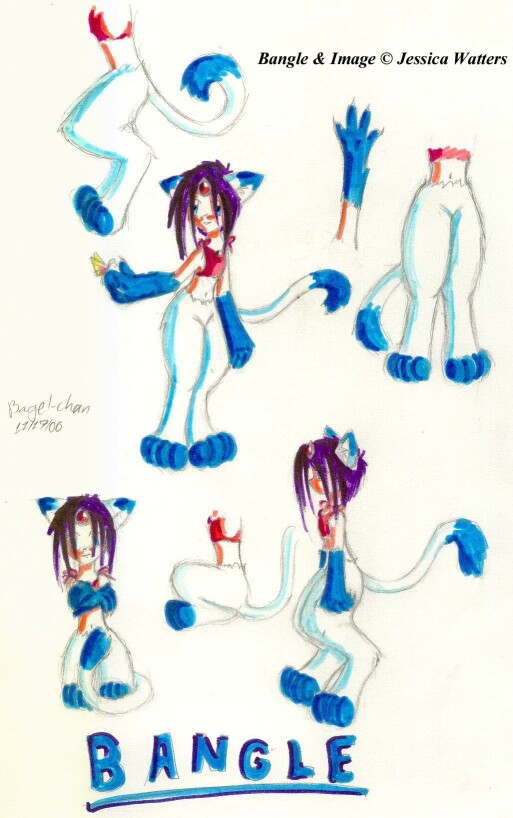 Title: Bangel-chan character design sheet Date: 11/17/00 Medium: marker Description: This is a semi-old picture of Bangel-chan that I still think it cute.... I gotta draw her more often.