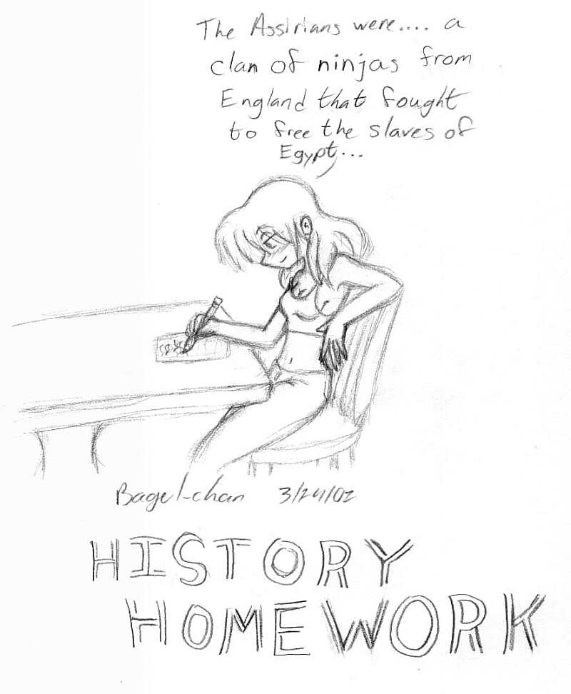 Title: Me And My History Homework Date: 03/14/01 Medium: pencil Description: I drew this when I was doing school homework... this is esspecially funny if you know where all of those historical references came from ^^;;;;