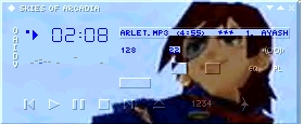 Swashbuckler!: Miscellaneous Things Media Download Finally, a Skies skin that has an equalizer and playlist! :D Unfortunately, the author of this skin is unknown. It's not very good, but I think it's the only SoA winamp around right now. -_- This doesn't have the equalizer or playlist either. :( Ok, I lied, but this was one of my first skins *ever*, so yeah, it's pretty poor....and the picture itself doesn't show up too well...but it's all I've got. I've also made a wallpaper....I don't have a thumbnail yet, but I'll get around to it soon. My very first gif EVER! The color is kinda off, though...and he doesn't do very much... Got something you want to send? Go right ahead! |