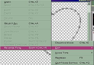 edit/reverse path (your cursor turns into the little text symbol (A) with a curve under it. ) You may want to save now, make a copy and keep your vector heart settings in a file to use again later. Now add a new raster layer to put your