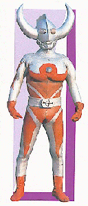 (However, other references refer to him as the ruler.) According to one manga, "Shine On! Ultra Warriors!!," Ultra Father has one main attack: the Ultra Black Hole. This attack is so serious, according to Ultra Mother, that it had not been used in 50,000 years. The same manga indicates that Ultra Father formed the Space Garrison, the organization to which all of the Ultra-Warriors belong, as the result of a commission by Ultraman King in a dream. One Email correspondent, Leong, has this to say about Ultra Father's black hole attack: I have found info about ultraman father.in an episode ultra mother said that ultra father got his black hole attack by destroying[with the help of an extinct race on the moon]a monster known as Kaslon who was 7770000 years old and whocame from Dimension Kira by using a black hole as a gateway and had created negative waves surrounding the M15 galaxy.ultra father was out at that time and could not get into the M15 galaxy went to the milky way which was also being surrounded and defeated kaslon by tricking him[he cannot talk except in his own language] into the black hole got the black hole attack by extending a moon-made device into the black hole.the moon people made this so the black hole would vanish. Ultra Father also has a special item called the Ultra Array. A cylindrical rod with two spherical light-emitters at the ends, it could temporarily blind an enemy's eyes. He also has a power beam, the Father Shot, fired by placing his arms in an "L"-shape. The manga "Ultraman Super Warrior Legend" also mentions a beam that comes from Ultra Father's horns. Ultra Father once saved Ultraman Ace and the other Ultra-Brothers before him from a monster, Hipporito, that turned them all into stone. Ultra Father rescued them by sending the energy of his ColorTimer into them. They then defeated Hipporito and returned Father to M78 for a recharge in the proverbial nick of time. (Apparently there is some small amount of time between the ColorTimer going dark and a particular Ultra-hero "never rising again." Ultraman was rescued by Zoffy after his ColorTimer had been damaged by Zetton; he was able to get Ultraman back to M78 before he expired.) |