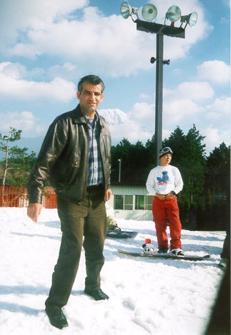 Snow skating site close to mount Fuji (mount summit appears over the