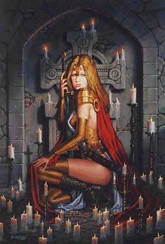 The God is associated with the right side of the altar. A sculpture or a figure of some sort may be used to represent the God. A red, yellow or gold candle is appropriate. Tools associated with the God are the Censer, Wand, Athame, and Boline.