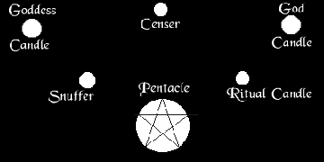 The Censer and Cauldron are sometimes set in the middle of the altar for offerings to both Goddess and God.