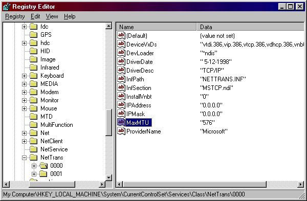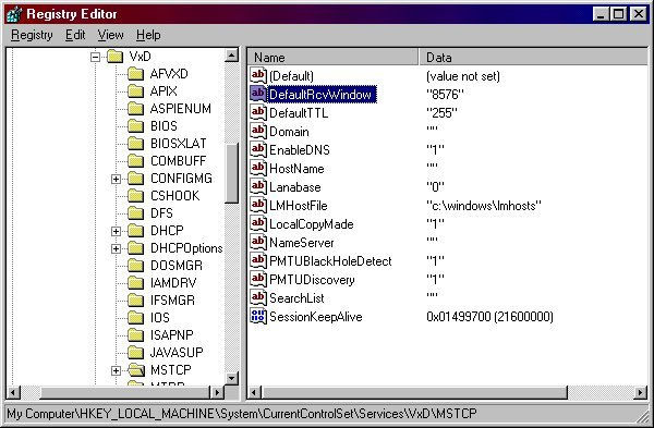 Go to Start | Run and type regedit. Go to the Registry key HKEY_LOCAL-MACHINE | System | CurrentControlSet | Services | VxD | MSTCP