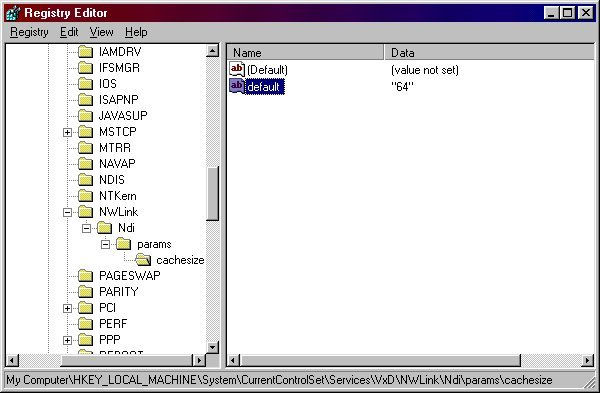 Go to HKEY_LOCAL_MACHINE | System | CurrentControlSet | Services | VxD | NWLink | Ndi | params | cachesize. Change the default value either to 0, 16, 32, or 64.