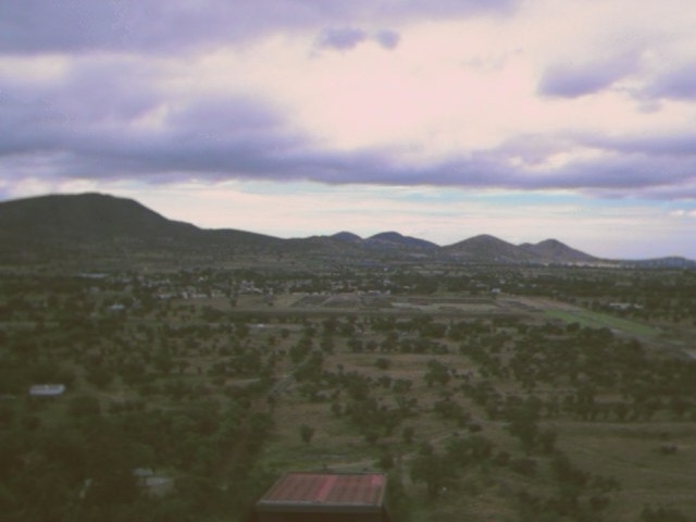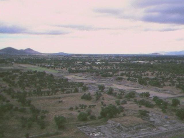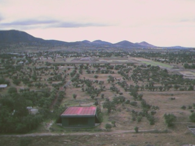 Aqui apreciamos una vista aerea desde la piramide del Sol. donde se observa el museo de Teotihucan.