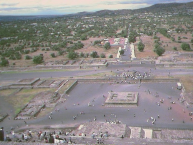 Aqui apreciamos la calzada de los muertos enfocada desde lo alto de la piramide del sol, notamos que aunque no