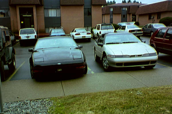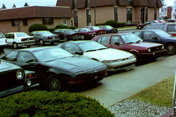 Picture of {from left to right} My car, Corry's car, Kyle's car My car is the Black, 89 Ford Probe LX. Corry's is the gold Eagle Talon. Kyle's is the red VW Golf.