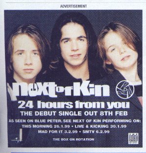 NEXT OF KIN: 24 Hours From You (Universal MCSTD4O2O21). This is the debut single from the three brothers that come across as the UK version of Hanson. Their youthful voices and the poppy chorus result in a singalong track with mass appeal.