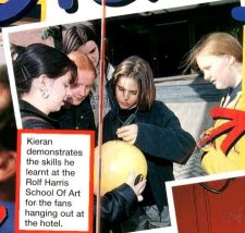 Kieran demonstrates the skills he learnt at the Rolf Harris School Of Art for the fans hanging out at the hotel,
