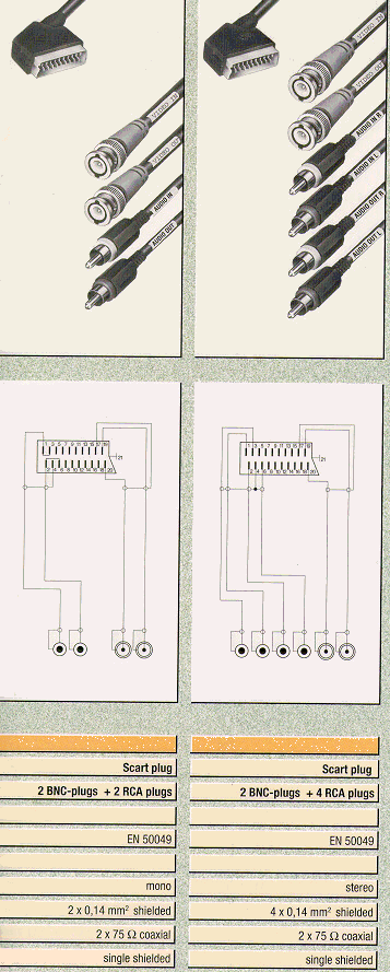 Scart to 2 Bnc+4Rca, US $ 3.29