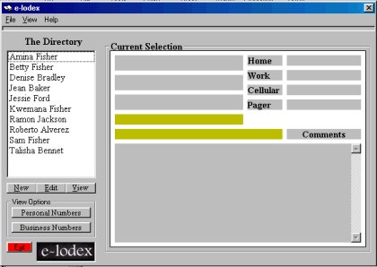 | e-dolex is a very useful program if you have lots of phone numbers, personal or business, that you need to keep track of. Its simplicity is another reason everyone needs one.e-dolex is an electronic rolodex, phone book, and yellow pages all in one. With the ability to edit entries with the click of one button you'll be happy to be part of the e-lodex world. SkiComs' main objective is to create user friendly software. Not software for just the computer guru. To get a closer look at the e-lodez interface click on the image to the right for a larger image. |