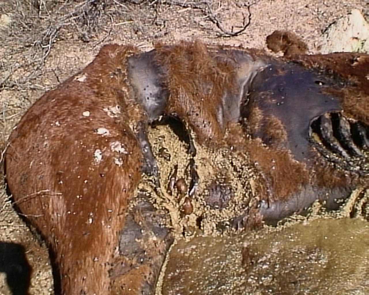Here's a few pics of a dead horse liquifying in the sun. Gross, not appropriate for anyone OVER the age of 10.
