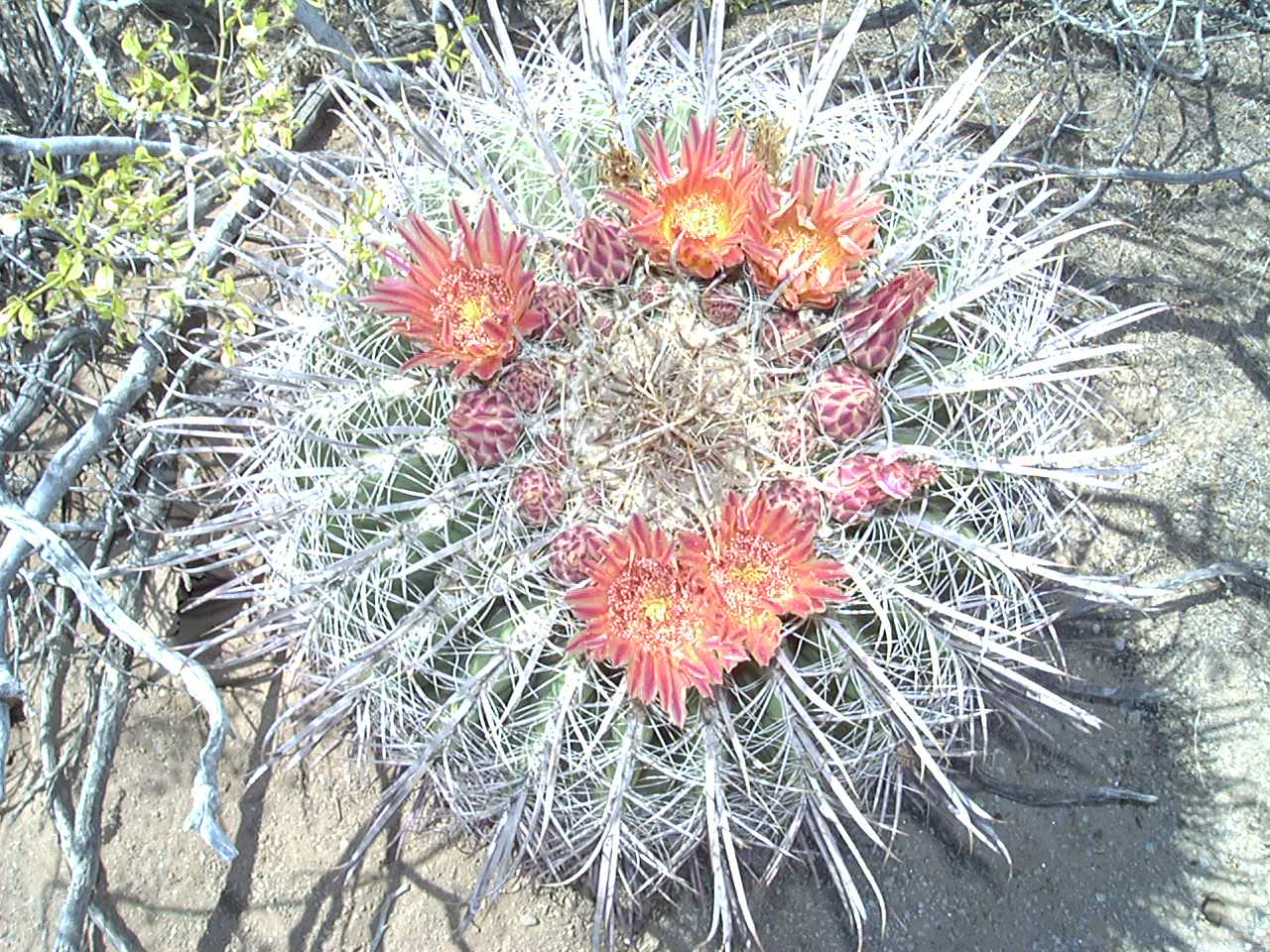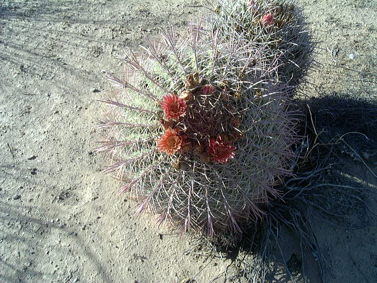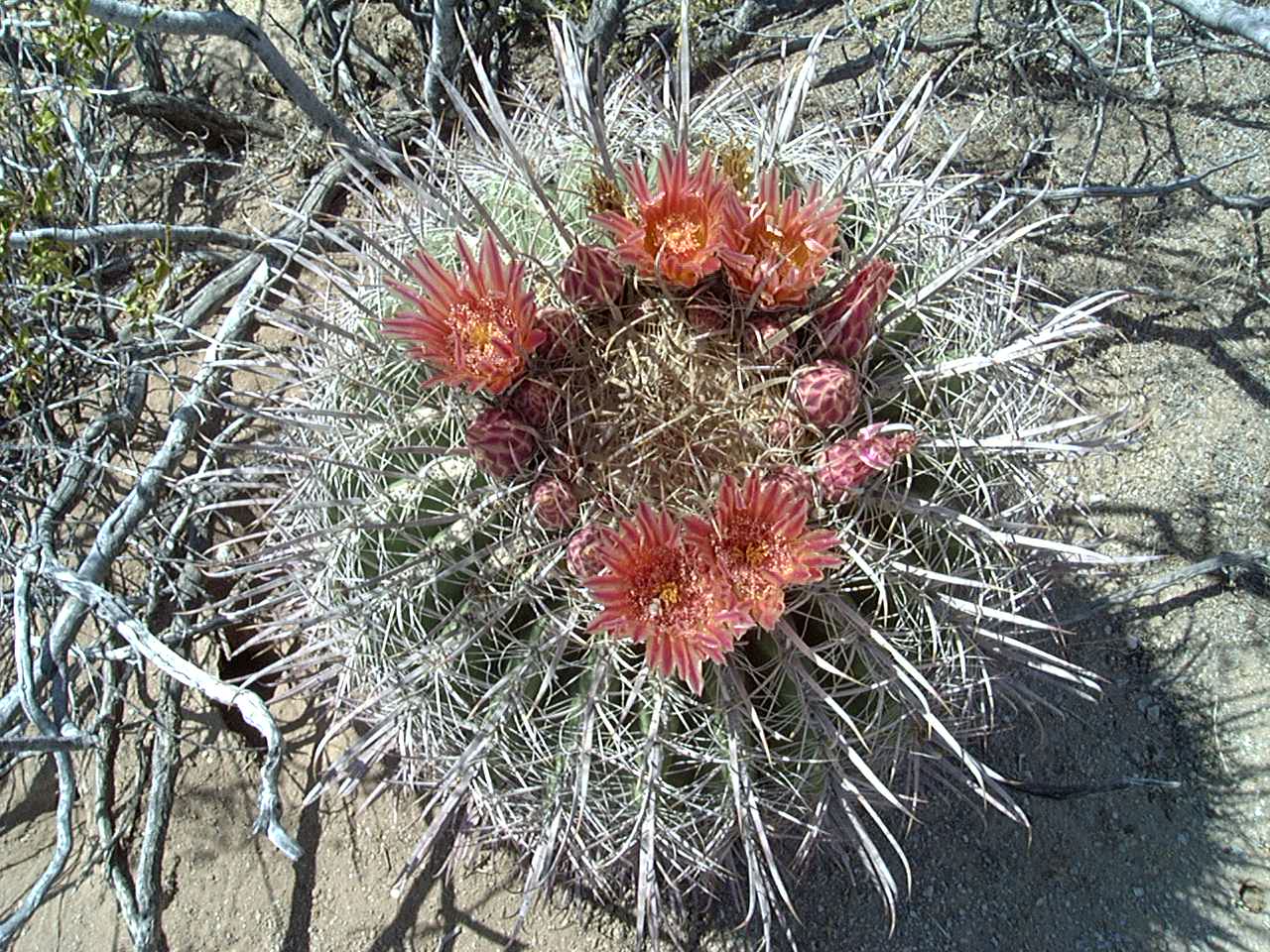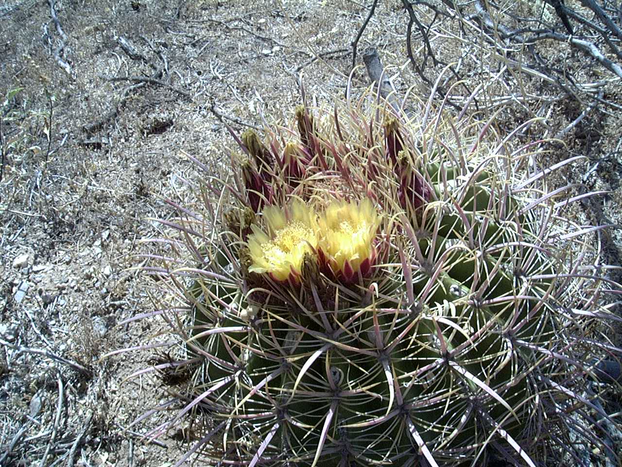 The rainbow barrel cacti are flowering again. Here's several views of one near my camp.