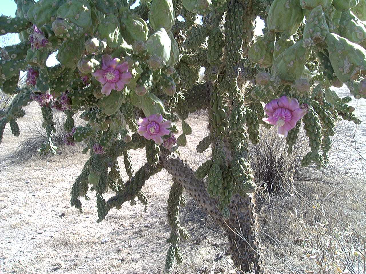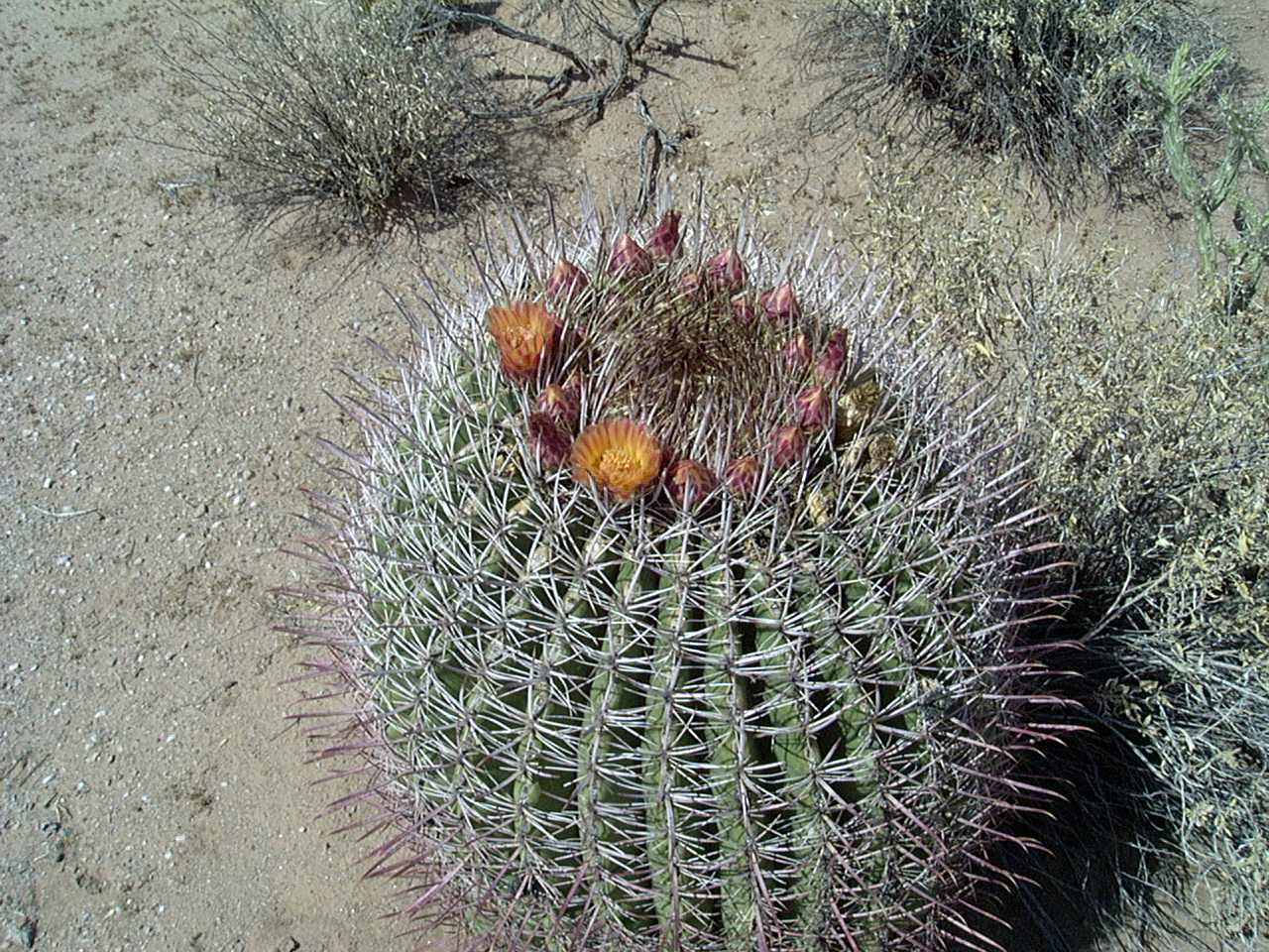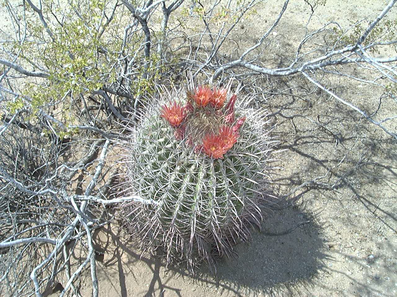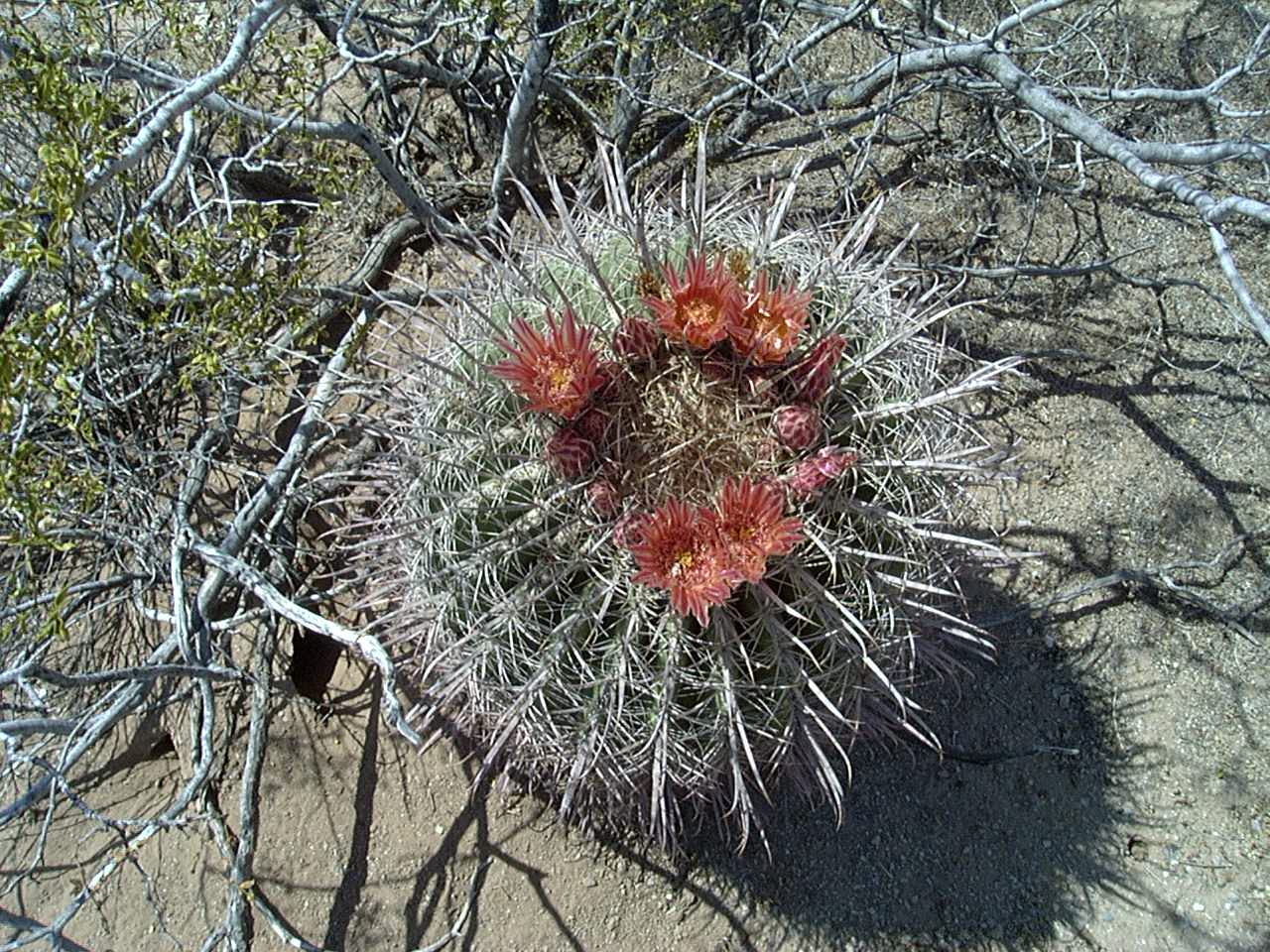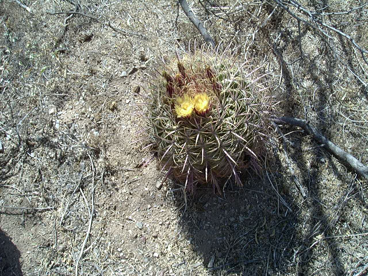 The rainbow barrel cacti are flowering again. Here's several views of one near my camp.