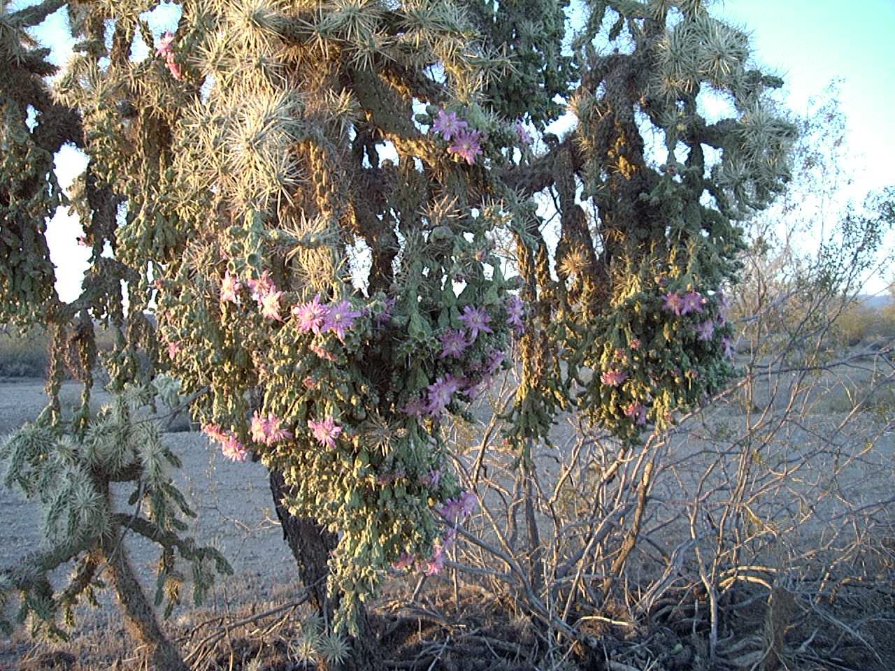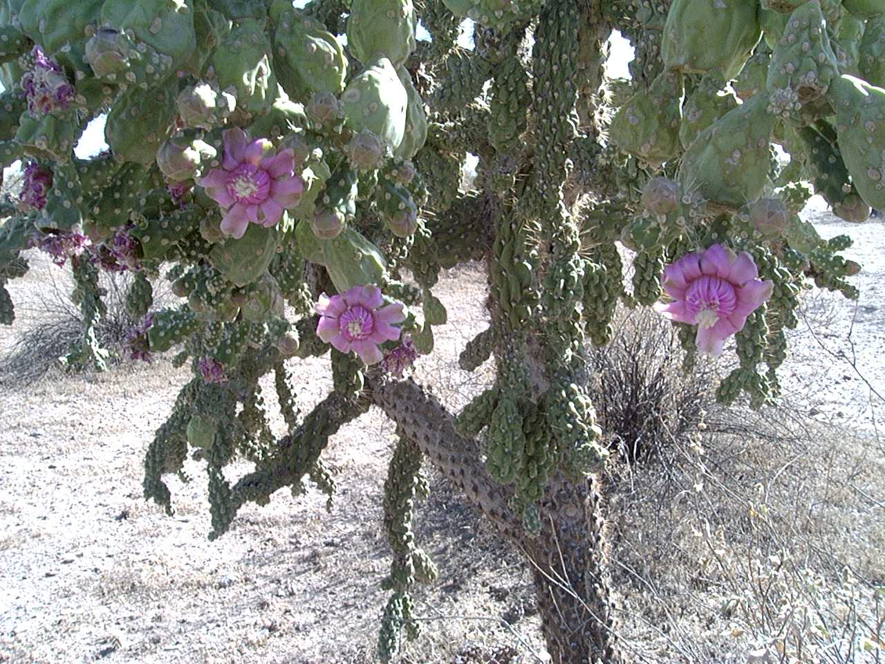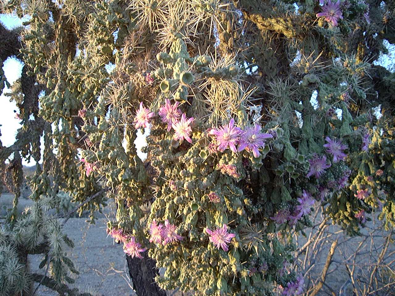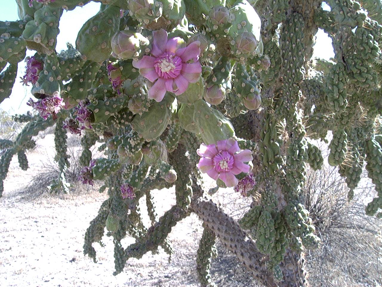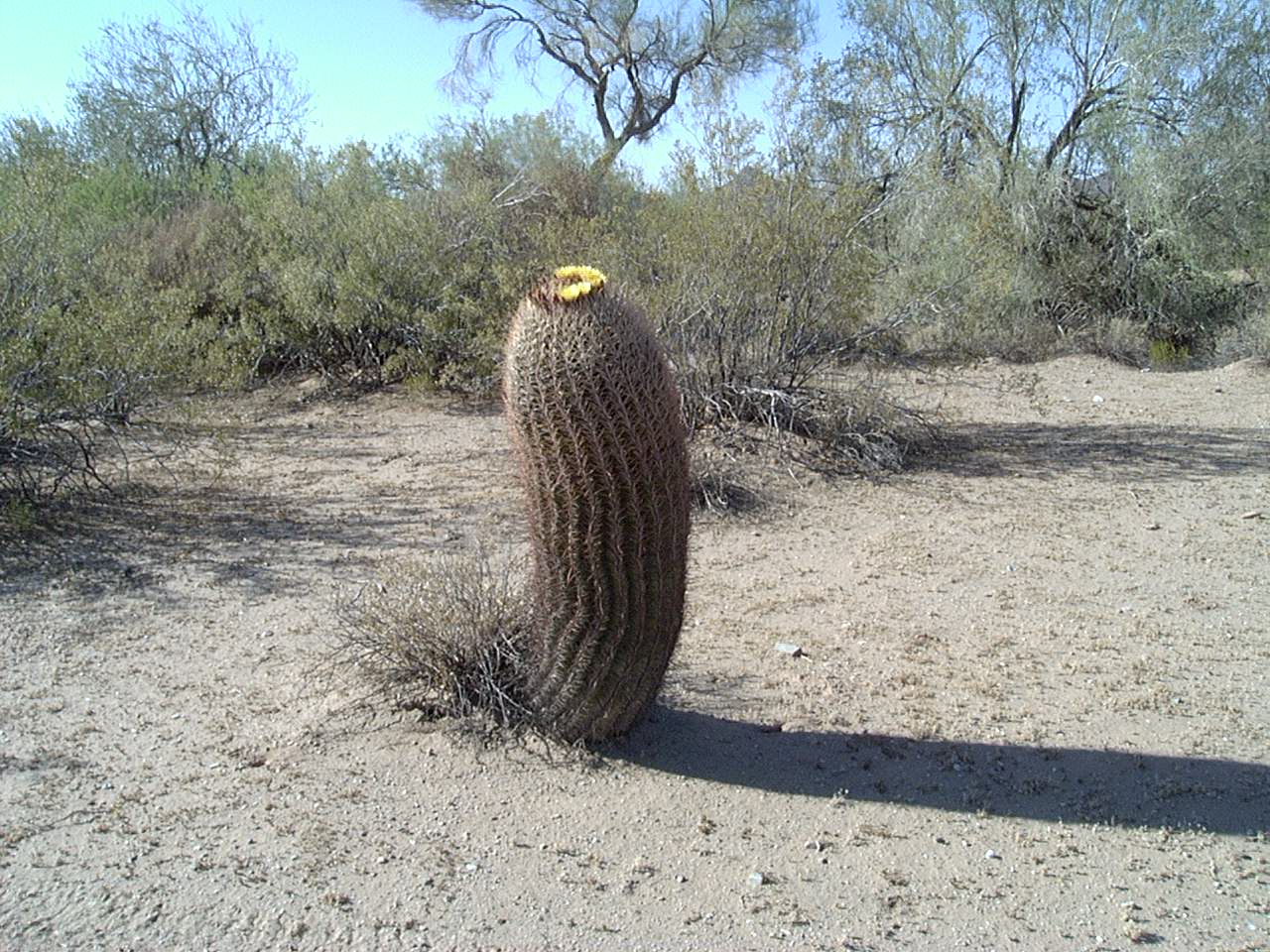The rainbow barrel cacti are flowering again. Here's several views of one near my camp.