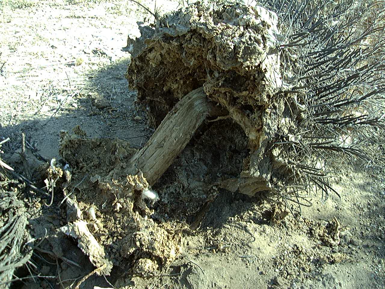 with my knife where a hole was, I found the entire cambium layer replaced with sawdust.