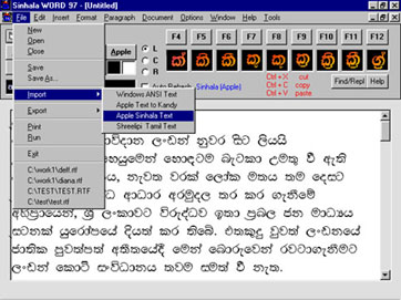 ![]() Release for 1998 The New Generation Sinhala & Tamil Word Processor for Windows 95 & NT.. that took Lankadeepa & Virakesari into the cyber space! |